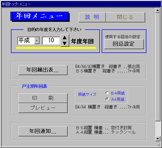 1.年回通知...ボタンを押す(年回通知フォームが開く)。