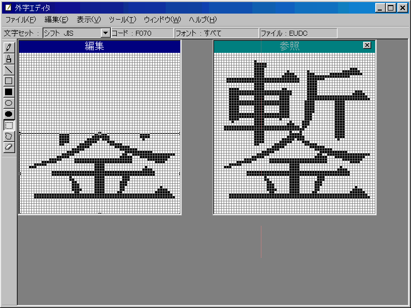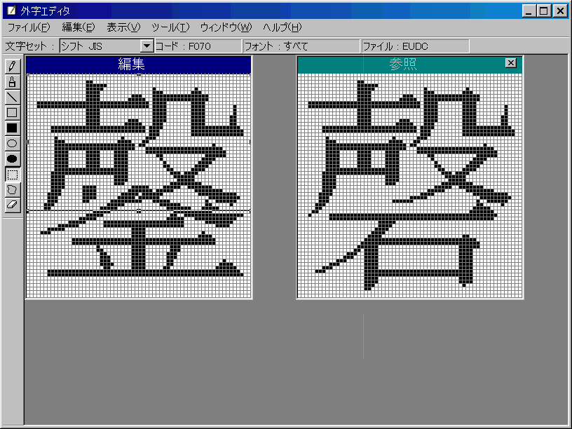 ◆<図5> 参照ウィンドウから編集ウィンドウへ”金”の部分をコピー、移動したところ