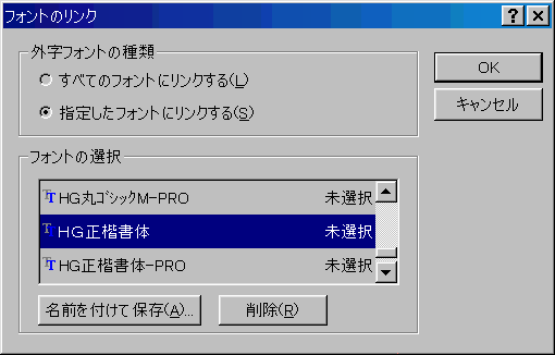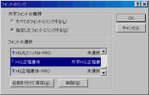 ◆<図15>フォントのリンクウィンドウで、外字ファイル名を保存した後の画面