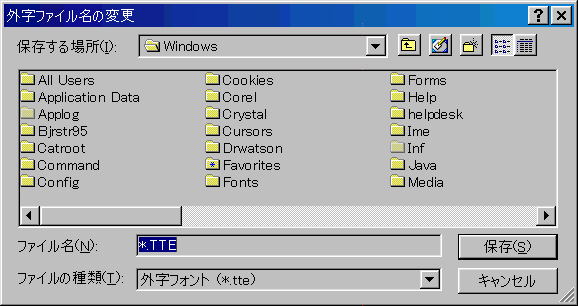 ◆<図14> 外字ファイル名の変更ウィンドウ